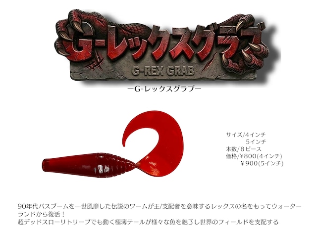 水流を身に纏う、バルキークロー。 中空エアホルダーを設けたファットボディと、フォール時やスイム時にタイトバイブをみせるフラッターアームに棘をまとったスパイニークローは、ボディ全体で水に絡みつく無数の棘が放置メソッドでの自発的アクションと群を抜く存在感でバスにアピールします。 さらにボディ頭部にエアを含みながら倒れ込むときに見せる、力強く水を押すキックバック波動はビッグバスに強烈な威力を発揮します。 SPINY CRAW 4inch(8/pac) 各¥935(税抜¥850)