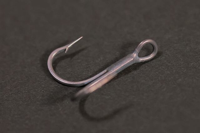 スプリットリングで装着可能なロウ付けセンターアイダブルフック。