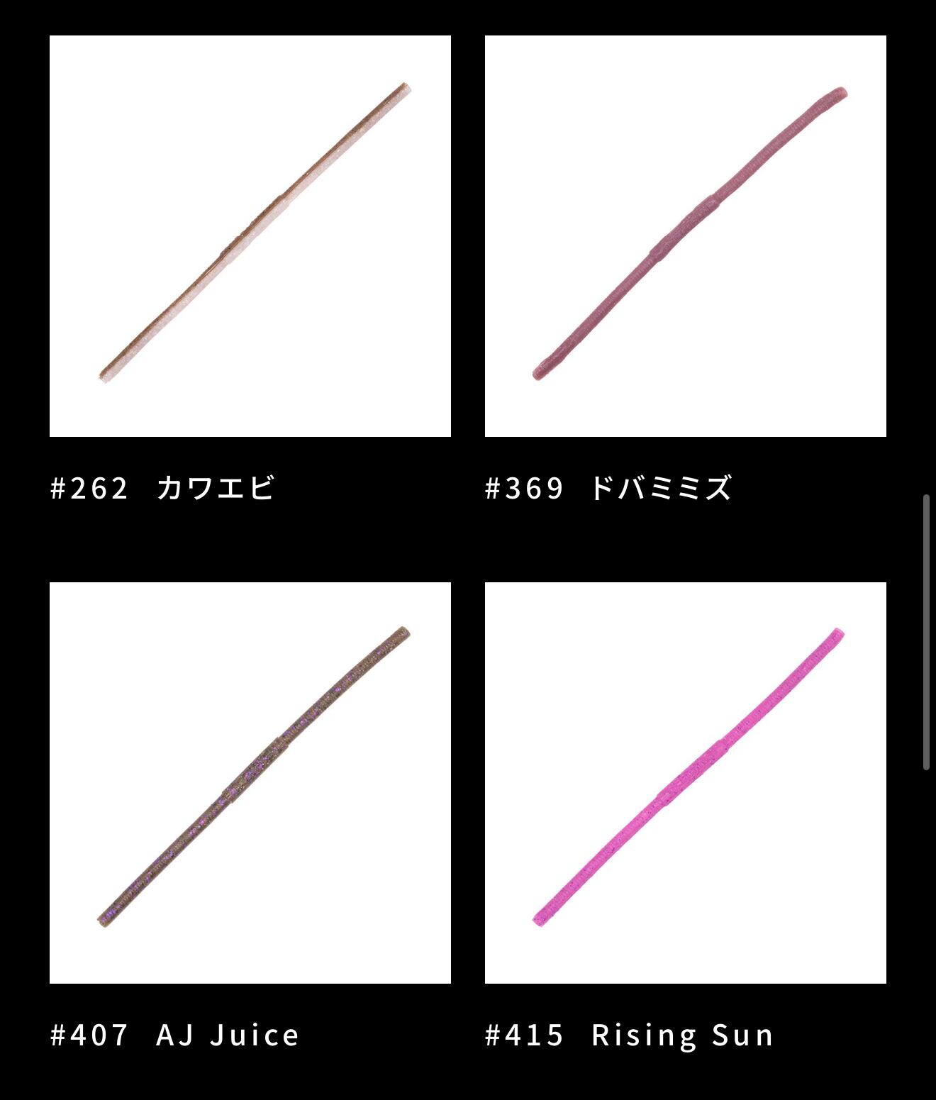 #001 グリーンパンプキン/#002 スカッパノン/#003 エビミソ/#004 グリパンチャート/#005 カワエビ/#006 ドバミミズ/#007 AJ Juice/#008 Rising Sun/#009 Pink Lemonade/#010 Homeless Magic/(全10色)