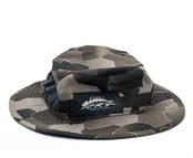 DRTオリジナルボディ。強風時や高速で走行するボート移動時などでハットが飛ばされないようにハワイアンフック装備の顎紐でガッチリ固定出来ます。後頭部~首元のUVカット日焼け防止にバックフラップ装備。内部にベルクロアジャスター付きでサイズ調整可能。