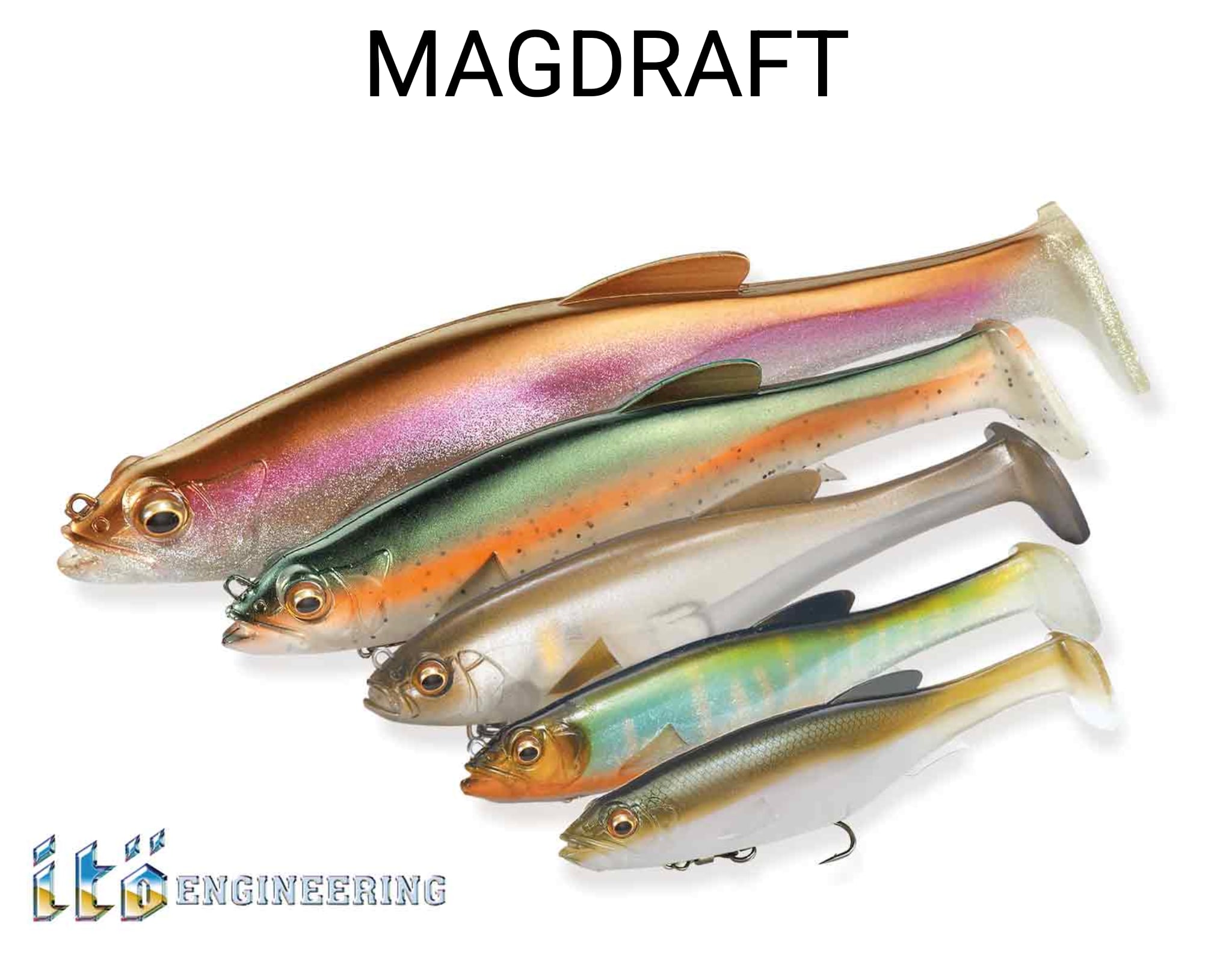 マグドラフトはスロー、ファストどちらでも、安定したリトリーブが可能なスイムベイト。アクションはウォブンロールを基本に、一般的なスイムベイトよりもややハイピッチに動きます。また、ベリー部のスリットとメガバス独自のマグホールドシステムでフックをボディへ密着。フックの存在感をカモフラージュし、魚への違和感を解消しています。