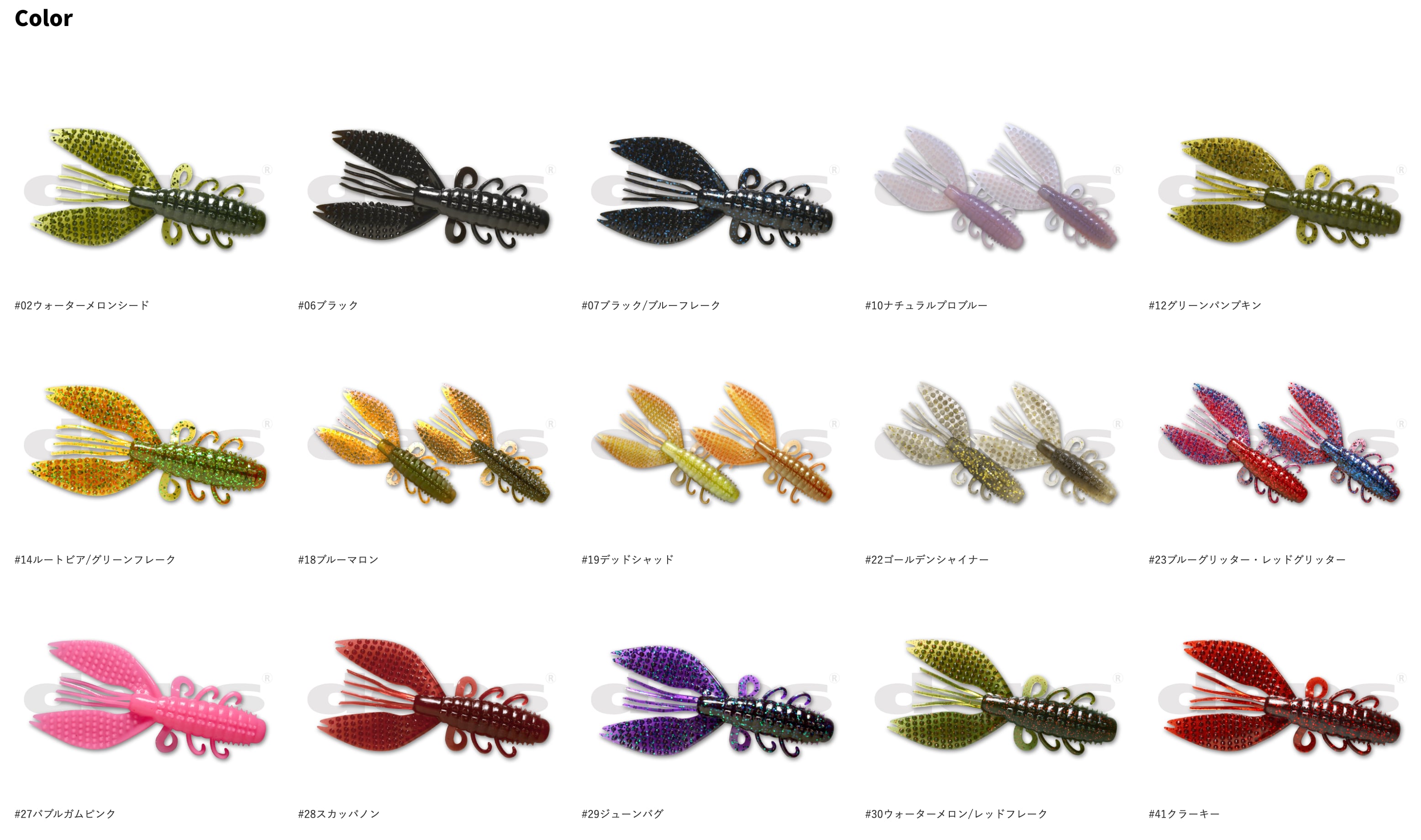 中空エアホルダーを設けたファットボディと、フォール時やスイム時にタイトバイブをみせるフラッターアームに棘をまとったスパイニークローは、ボディ全体で水に絡みつく無数の棘が放置メソッドでの自発的アクションと群を抜く存在感でバスにアピールします。