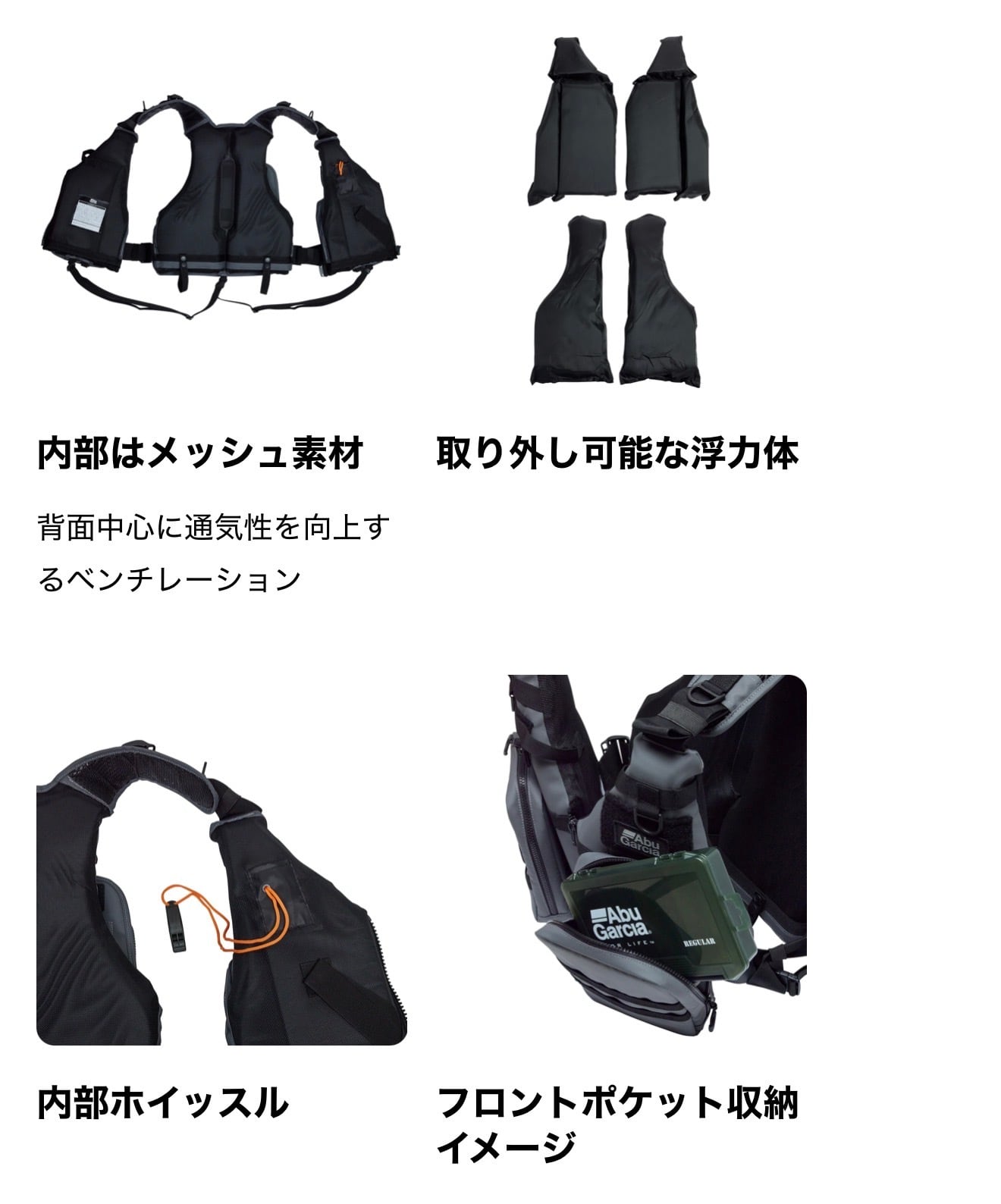 *フロントポケットは脱着式で、SUPやカヤックなどで水中に落ちる頻度の高いウォーターアクティビティでの釣りの場合は、外して着用することで、水中からボート上などに上がるときに引っ掛かりを軽減できます。