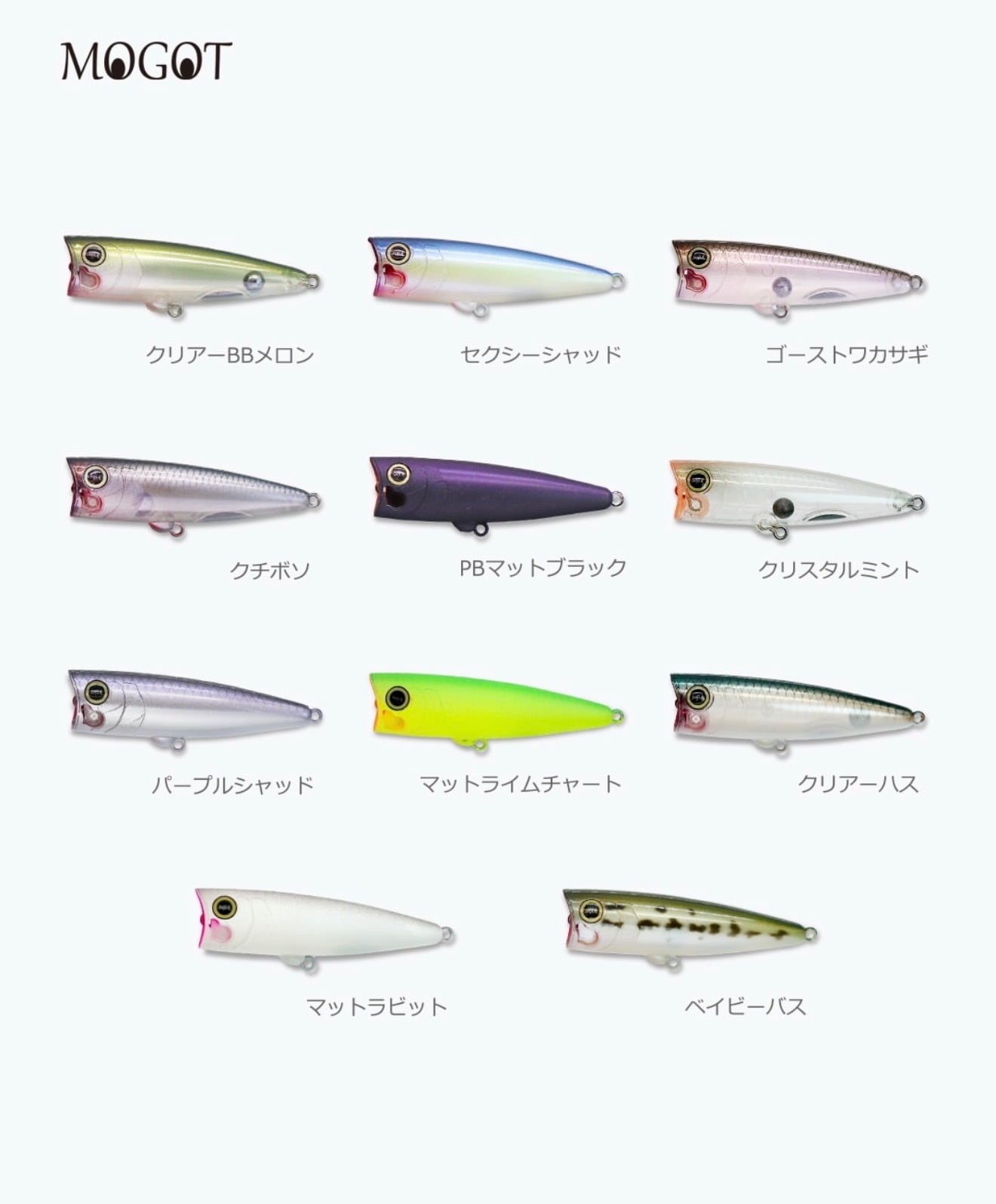 "MOGOT/モゴット"はドットシックスから継承される薄肉コンセプト設計のポッパー。内部の空気室の確保と軽量化によるアクションレスポンスを追求。
