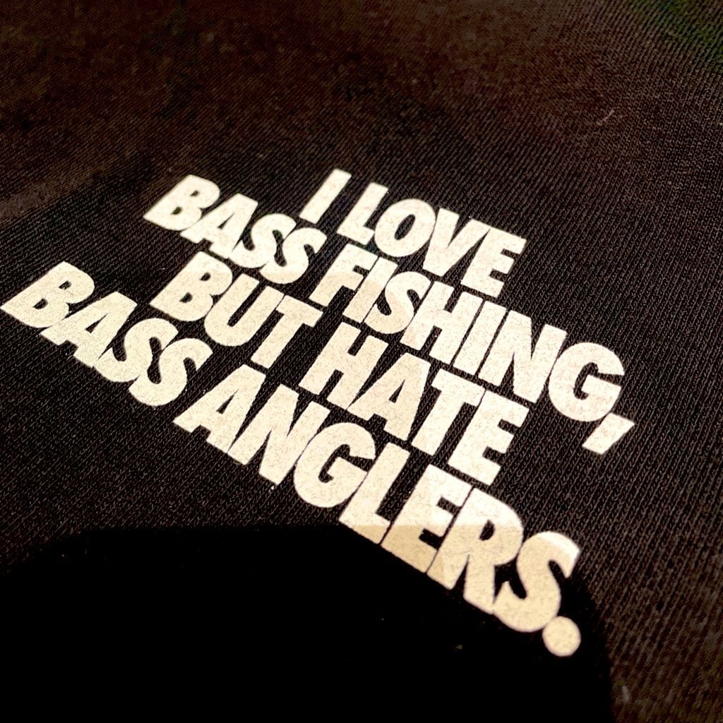 バスフィッシング好きなら一度は思った事があるLOVE & HATEをストレートに書いたメッセージを胸元に。